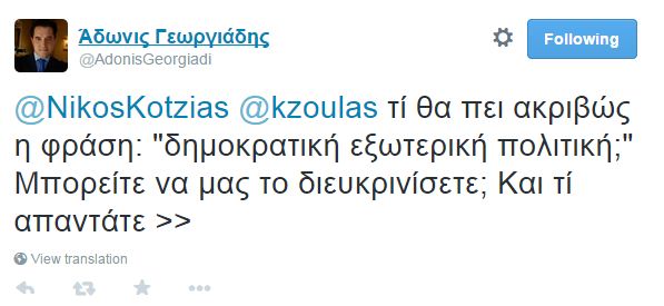 Ένα tweet του υπουργού Εξωτερικών Νίκου Κοτζιά, στάθηκε αφορμή για να ξεσπάσει άγριος καυγάς με τον βουλευτή της Νέας Δημοκρατίας Άδωνι Γεωργιάδη.