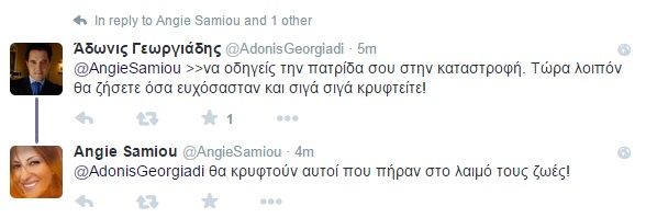 Την Παρασκευή το απόγευμα ο Άδωνις Γεωργιάδης είχε πάρει το ipad αγκαλιά και tweetαρε. Η Άντζυ Σαμίου, μόλις τον πήρε είδηση, του έριξε την πρώτη βολή: