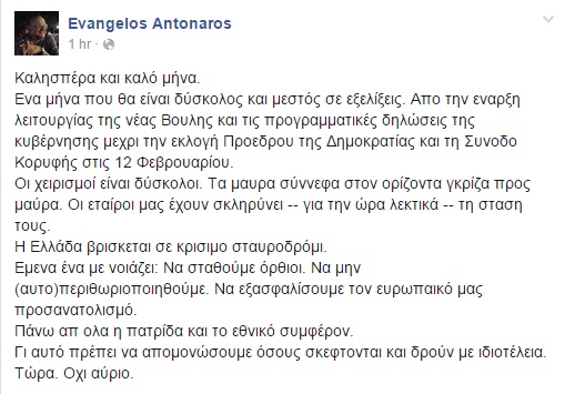 Στη συνέχεια, ο Ευάγγελος Αντώναρος έκανε το ακόλουθο σχόλιο στο Facebook: