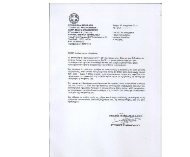 Σύμφωνα με αυτό, η Μαργαρίτα Παπανδρέου, δεν υπάρχει στη Λίστα Λαγκάρντ, ούτε και σε οποιαδήποτε άλλη λίστα καταθετών.