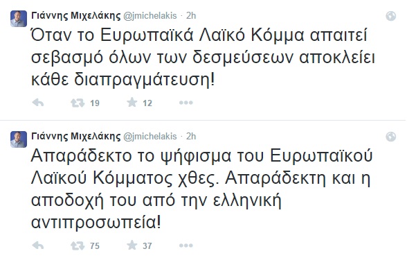 Όταν το Ευρωπαϊκά Λαϊκό Κόμμα απαιτεί σεβασμό όλων των δεσμεύσεων αποκλείει κάθε διαπραγμάτευση!”.