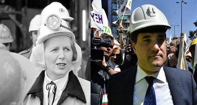 Αξίζει ωστόσο να γίνει μία ιδιαίτερη μνεία στον παραλληλισμό του info-war του Άρη Χατζηστεφάνου, ο οποίος αποτύπωσε με μία λέξη και μία αντιδιαστολή της φωτογραφίας την ωμή πραγματικότητα για το ποιόν του Άδωνι Γεωργιάδη. Με τη λέξη… Θατσερίτσα και μία πανομοιότυπη φωτογραφία της πάλαι ποτέ σιδηράς κυρίας του άκρατου νεοφιλελευθερισμού της Βρετανίας, Μάργκαρετ Θάτσερ.