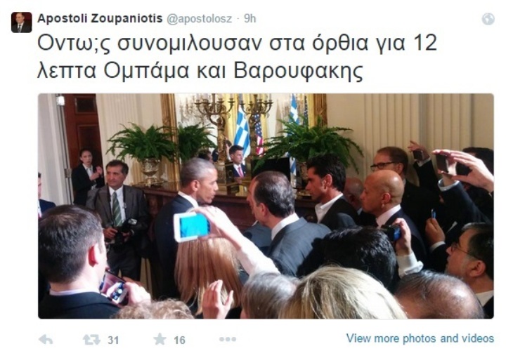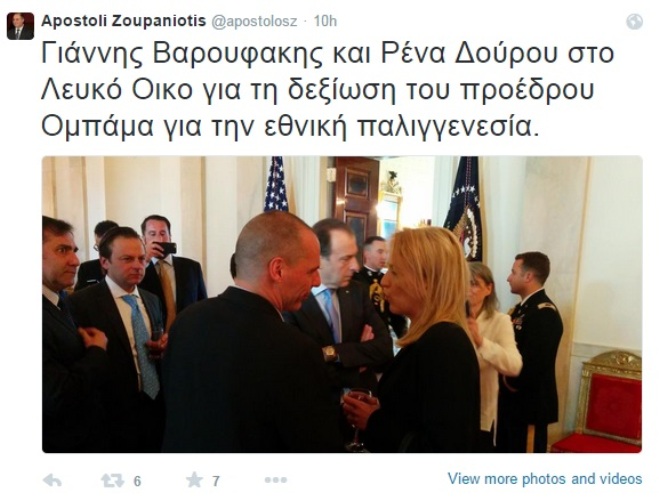 Αναλυτικότερα, ο πρόεδρος Ομπάμα καλωσόρισε τον υπουργό Οικονομικών, Γιάνη Βαρουφάκη, τους πρέσβεις της Ελλάδας και της Κύπρου και ιδιαίτερα τον Αρχιεπίσκοπο Αμερικής Δημήτριο, με τον οποίο όπως είπε έχουν τακτικές επαφές το τελευταίο διάστημα.