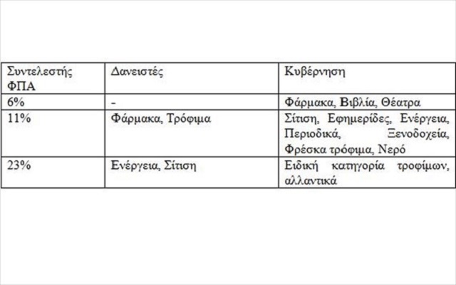 Κυβέρνηση: Η εφαρμογή του νέου ΦΠΑ σε ξενοδοχεία, καταλύματα και νησιά [όπου καταργούνται οι εξαιρέσεις] θα εφαρμοστούν από την 1η Οκτωβρίου του 2015. Ουσιαστικά μειώνονται οι τιμές των φαρμάκων [έστω και κατά μισή ποσοστιαία μονάδα], ενώ σημαντικά μειώνονται και οι τιμές του ηλεκτρικού ρεύματος.