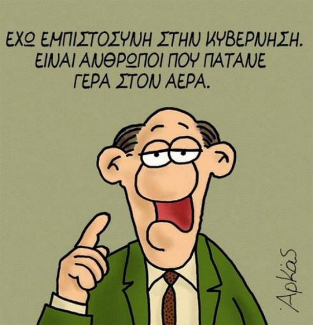 Το εν λόγω σκίτσο, στο οποίο εμφανίζεται ένας άντρας να λέει πως έχει εμπιστοσύνη στην κυβέρνηση επειδή «είναι άνθρωποι που πατάνε γερά στον αέρα», θεωρήθηκε από κάποιους προσβολή για την μάχη που δίνει η κυβέρνηση.
