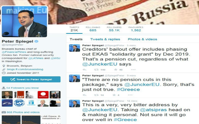 Λεπτό προς λεπτό παρακολουθούσε ο δημοσιογράφος των Financial Times, Peter Spiegel, τη συνέντευξη Τύπου που παραχώρησε το μεσημέρι της Δευτέρας ο Ζαν Κλοντ Γιουνκέρ.