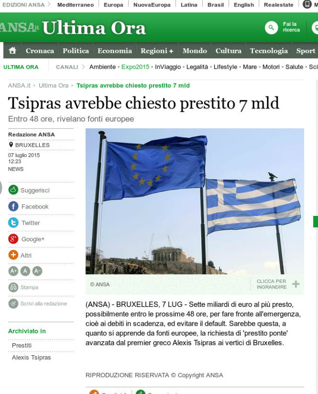 Επειγόντως ζητάει ο πρωθυπουργός Αλέξης Τσίπρας 7 δισ. ευρώ προκειμένου να γλιτώσει η Ελλάδα από την χρεοκοπία.
