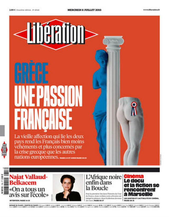 «Ελλάδα, ένα γαλλικό πάθος» είναι ο τίτλος του πρωτοσέλιδου της γαλλικής Liberation.
