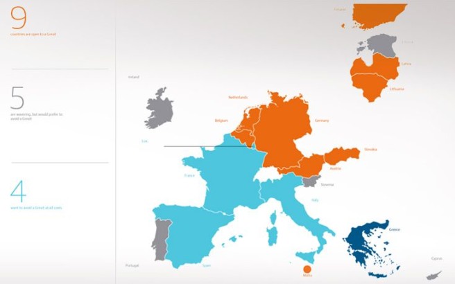 Τον χάρτη σχεδίασε ο βρετανικός Guardian με κριτήριο ποιες χώρες ήθελαν και ποιες δεν ήθελαν ένα Grexit.