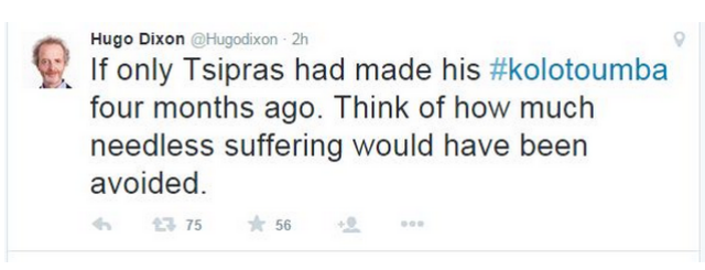 Δεν είναι και η πρώτη φορά που ο δημοσιογράφος του πρακτορείου Reuters Χούγκο Ντίξον ασκεί κριτική στο Έλληνα πρωθυπουργό Αλέξη Τσίπρα, για τον τρόπο που διαπραγματεύτηκε.
