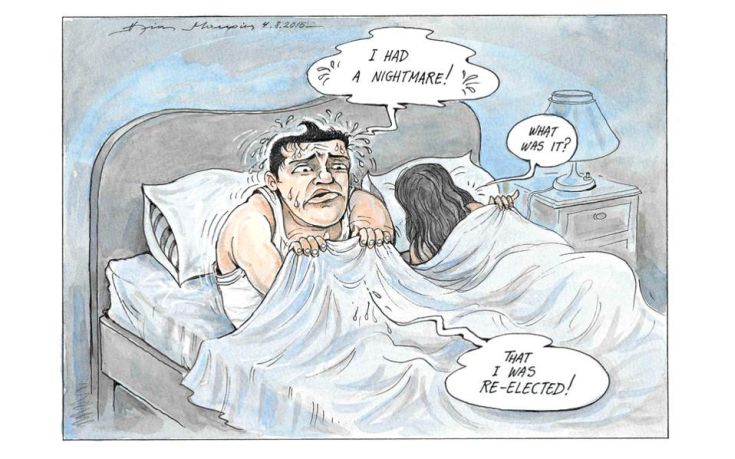 Παράλληλα, θυμίζει ένα πρόσφατο σκίτσο της «Καθημερινής», το οποίο δείχνει τον Τσίπρα να ξυπνά από εφιάλτη. Ο εφιάλτης αυτός ήταν ότι απλά είχε κερδίσει τις εκλογές! «Δεν είναι όνειρο Αλέξη. Πράγματι πρόκειται να είσαι και πάλι πρωθυπουργός» σημειώνει χαρακτηριστικά ο αρθρογράφος του Guardian.