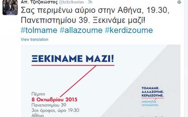 Στην ανάρτηση – πρόσκληση γράφει: Σας περιμένω αύριο στην Αθήνα, 19.30, Πανεπιστημίου 39. Ξεκινάμε μαζί!
