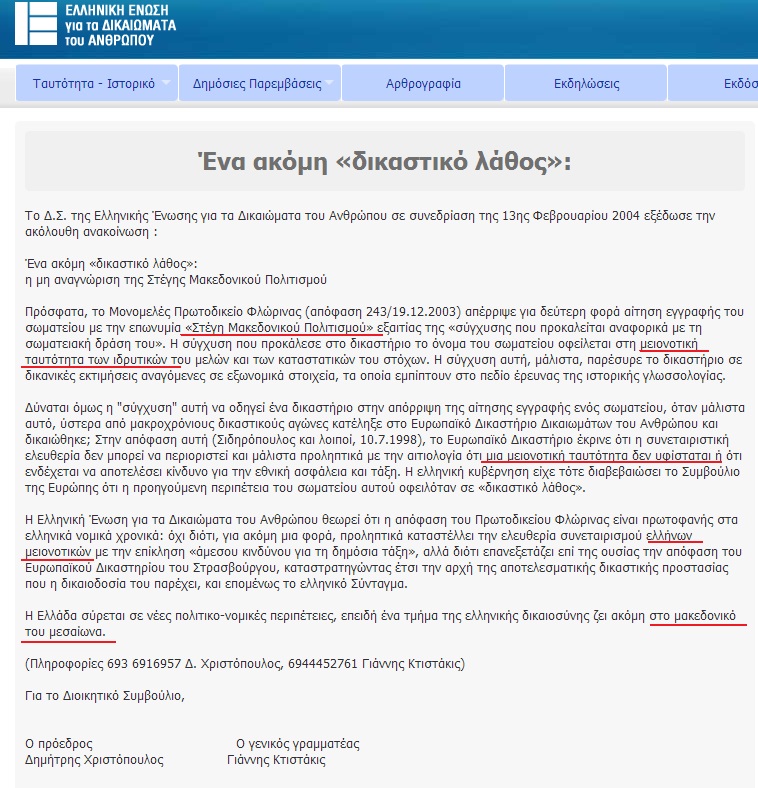 «Είναι ιδιαίτερα αποκαλυπτικό το σημερινό δημοσίευμα της εφημερίδας «Δημοκρατία», ότι ο υποψήφιος Ευρωβουλευτής του ΣΥΡΙΖΑ Δημήτρης Χριστόπουλος, πριν μερικά χρόνια, καθύβριζε την Ελληνική Δικαιοσύνη, δηλώνοντας ότι ζει τον «Μακεδονικό της μεσαίωνα», επειδή απέρριψε το αίτημα φιλοσκοπιανών εθνικιστών να ιδρύσουν στη Φλώρινα «Στέγη Μακεδονικού Πολιτισμού».