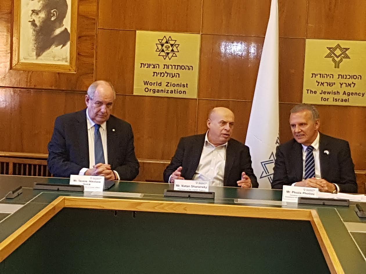 Ο Υφυπουργός Εξωτερικών της Ελλάδας κ. Τέρενς Κουίκ και ο Επίτροπος Προεδρίας της Κυπριακής Δημοκρατίας για Ανθρωπιστικά θέματα και θέματα Αποδήμων κ. Φώτης Φωτίου, είχαν την πρώτη συνάντηση με τον επικεφαλής της «Εβραϊκής Οργάνωσης για το Ισραήλ» Νάταν Σαράνσκι και τη δεύτερη με τη Υφυπουργό Εξωτερικών Τζίπε Χοτόβελι.