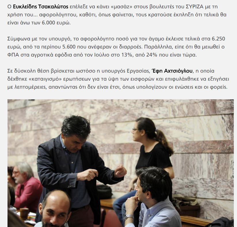 Σε δύσκολη θέση βρίσκεται ωστόσο η υπουργός Εργασίας, Έφη Αχτσιόγλου…» σημειώνει το ρεπορτάζ στην ιστοσελίδα του Πρώτου Θέματος από την Βουλή κατά τη διαδικασία ενημερωσης των βουλευτών του ΣΥΡΙΖΑ για το πολυνομοσχέδιο με τα μέτρα της συμφωνίας.