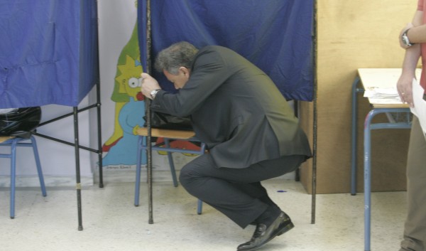 Ωστόσο, ο Γιάννης Σγουρός, δεν έχασε την ψυχραιμία του και χαμογελώντας έσκυψε, έπιασε τον φάκελο και τον έριξε στην κάλπη.