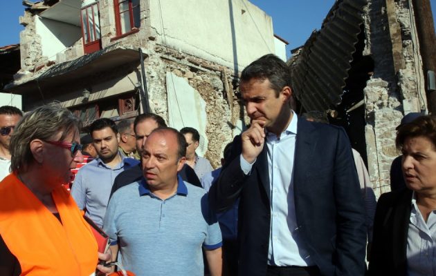 Την ανάγκη διαρκούς στήριξης του κράτους, στο τραυματισμένο από τον Εγκέλαδο χωριό Βρίσα, ζήτησε ο πρόεδρος της ΝΔ Κυριάκος Μητσοτάκης, κατά την επίσκεψή του στις σεισμόπληκτες περιοχές της Λέσβου.