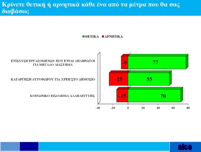 Το 77% κρίνει θετικά την ενίσχυση των εργαζόμενων που είναι απλήρωτοι για μεγάλο διάστημα, ενώ το 9% αρνητικά.