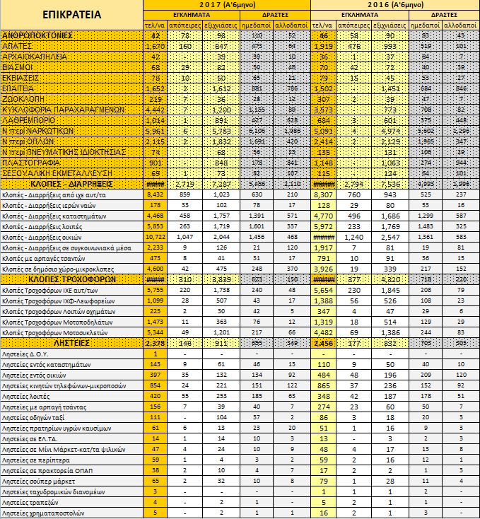 Η πηγή των στοιχείων τα οποία παρέθεσε ο Πρωθυπουργός, είναι ο πίνακας που δημοσίευσε η ΕΛΑΣ, για το Α’ Εξάμηνο του 2017, ο οποίος και επισυνάπτεται”.