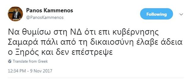 Διαβάστε σχετικά για Twitter, Ανεξάρτητοι Έλληνες, Δημήτρης Κουφοντίνας, Δικαιοσύνη, Νέα Δημοκρατία, Πάνος Καμμένος, Τρομοκρατία, Φυλακές, Φυλακές Κορυδαλλού, Χριστόδουλος Ξηρός,