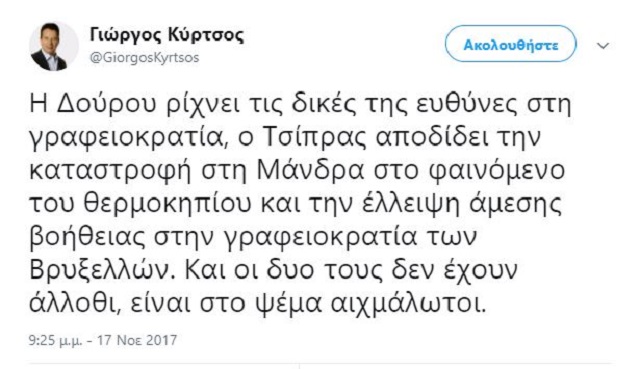 Ο ευρωβουλευτής της ΝΔ δεν άντεξε να μην εκμεταλλευτεί τις φονικές πλημμύρες προκειμένου να εξυπηρετήσει τα μικροκομματικά του συμφέροντα, αποδεικνύοντας πως στον «βωμό» του πολιτικού κέρδους, ο σκοπός αγιάζει τα μέσα.