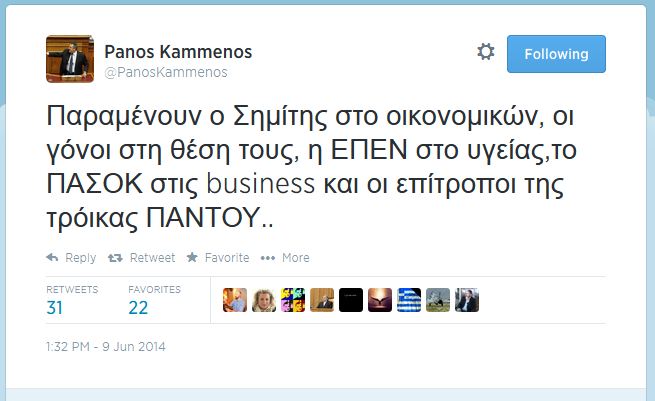 “Παραμένουν ο Σημίτης στο οικονομικών, οι γόνοι στη θέση τους, η ΕΠΕΝ στο υγείας,το ΠΑΣΟΚ στις business και οι επίτροποι της τρόικας ΠΑΝΤΟΥ..”