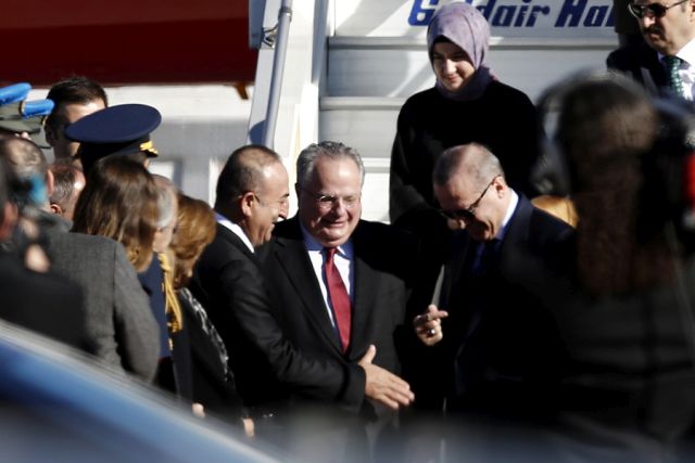 Tο αεροσκάφος του Τούρκου προέδρου Ρετζέπ Ταγίπ Ερντογάν προσγειώθηκε στο «Ελευθέριος Βενιζέλος», λίγο πριν τις 11 π.μ. όπου τον περίμενε ο Έλληνας υπουργός Εξωτερικών Νίκος Κοτζιάς.