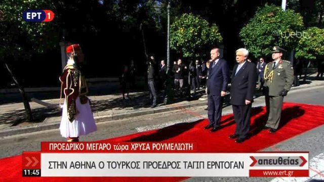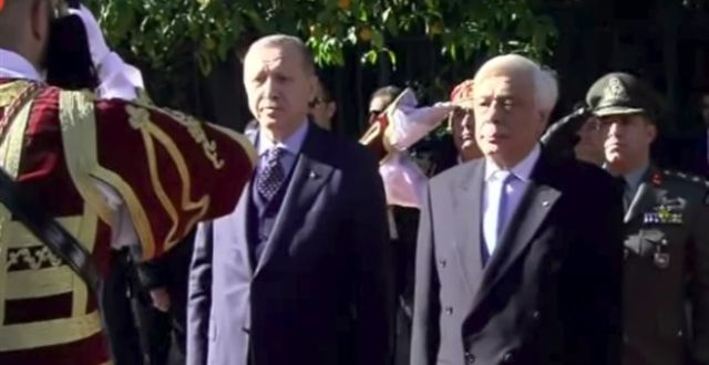Νωρίτερα, στο Προεδρικό Μέγαρο έγινε η επίσημη τελετή υποδοχής του Τούρκου Προέδρου Ρετζέπ Ταγίπ Ερντογάν.
