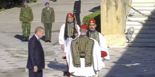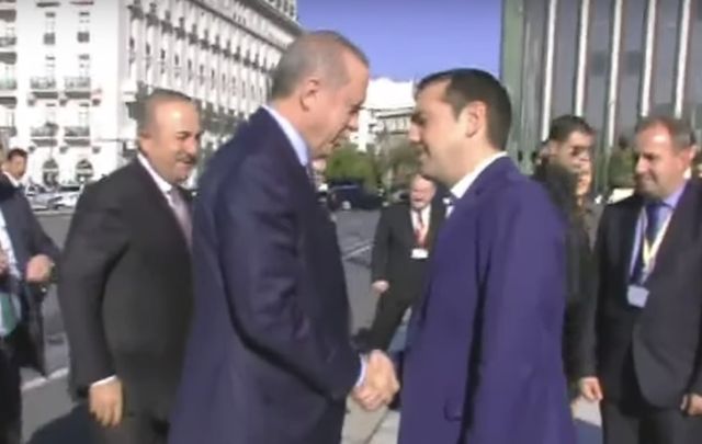 Λίγο νωρίτερα, ο Τούρκος πρόεδρος Ρετζέπ Ταγίπ Ερντογάν βρέθηκε στο Σύνταγμα όπου τον υποδέχτηκε ο Αλέξης Τσίπρας.