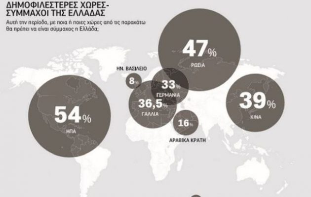 Την πεντάδα των προτιμητέων συμμάχων έρχονται να συμπληρώσουν η Γαλλία (με 36,5%) και η Γερμανία (με 33%).