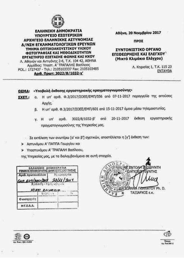 Ειδικότερα, η έκθεση ξεκαθαρίζει ότι: «Από την υπηρεσία μας ζητήθηκε η εξέταση του ως άνω δίσκου και η ταυτοποίηση του ομιλούντος φυσικού προσώπου». Αυτό και μόνο ήταν το αίτημα της Εισαγγελίας και όχι γενικά να διαπιστωθεί «περί τίνος πρόκειται».