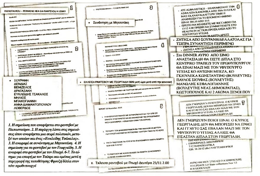Όπως αποκαλύπτει η εφημερίδα «Δημοκρατία», τα σημειώματα, με μορφή καθημερινών αναφορών που απευθύνονται από τη γραμματέα του Κωνσταντίνου Φρουζή στον ίδιο, καταδεικνύουν τον πολύ μεγάλο βαθμό διείσδυσης της εταιρείας στο πολιτικό σύστημα και τις προσπάθειες που κατέβαλε προκειμένου να τους έχει όλους στο χέρι.