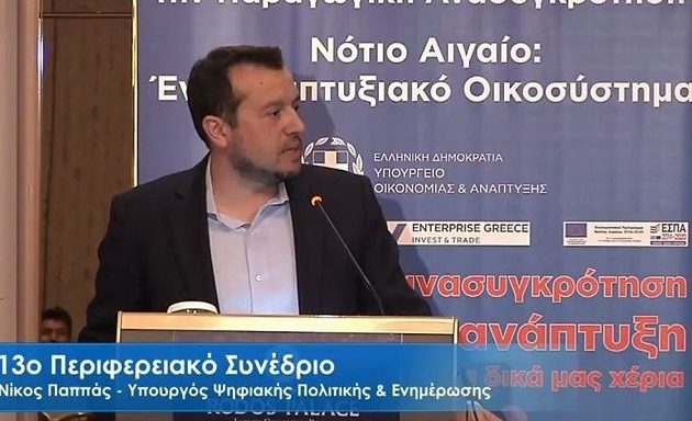 Στην ανάγκη να αντιμετωπιστεί το ζήτημα της νησιωτικότητας, καθώς οι ανισότητες είναι η ρίζα των κρίσεων, αναφέρθηκε ο υπουργός Ψηφιακής Πολιτικής Τηλεπικοινωνιών και Ενημέρωσης Νίκος Παππάς, κατά την ομιλία του στο αναπτυξιακό συνέδριο Νοτίου Αιγαίου που πραγματοποιείται στο ξενοδοχείο “Ρόδος Παλάς”.