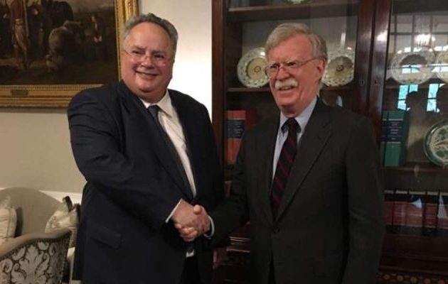 Η διεύρυνση της στρατηγικής συνεργασίας ανάμεσα στην Ελλάδα και τις Ηνωμένες Πολιτείες, μαζί με μια σειρά από θέματα κοινού γεωπολιτικού ενδιαφέροντος, τέθηκαν επί τάπητος στη συνάντηση που είχε ο Έλληνας υπουργός Εξωτερικών Νίκος Κοτζιάς με τον σύμβουλο Εθνικής Ασφάλειας του Ντόναλντ Τραμπ, Τζον Μπόλτον, στον Λευκό Οίκο.
