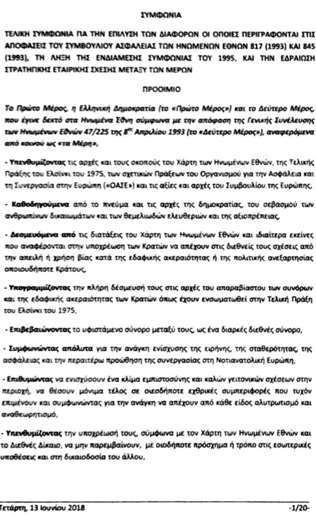 Δείτε τη συμφωνία για το Σκοπιανό: