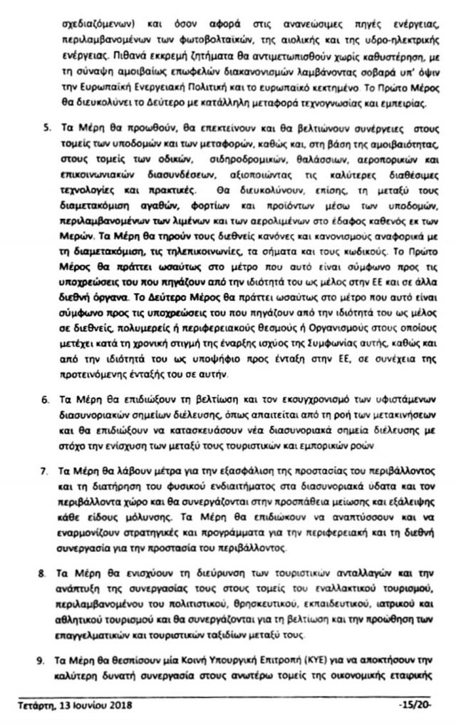 Μεταξύ άλλων, στο κείμενο της συμφωνίας προβλέπονται τα εξής: