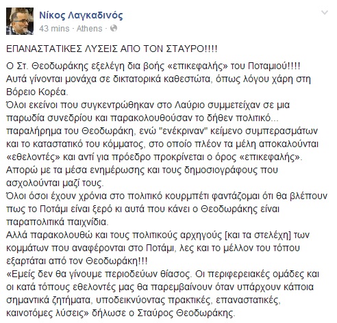 Αλλά παρακολουθώ και τους πολιτικούς αρχηγούς [και τα στελέχη] των κομμάτων που αναφέρονται στο Ποτάμι, λες και το μέλλον του τόπου εξαρτάται από τον Θεοδωράκη!!!