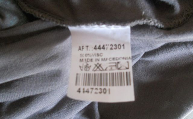Ετικέτα σε ρούχο, το οποίο μάλιστα πωλούνταν στη Θεσσαλονίκη, με ετικέτα made in Madedonia.