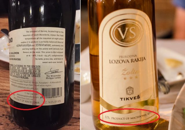 «Εως τώρα, το σύνολο των οίνων της πΓΔΜ φέρει την ένδειξη «Republic of Macedonia» ως προς τον τόπο προέλευσης. Από τη στιγμή που θα τεθεί σε ισχύ η συμφωνία των Πρεσπών, όσα προϊόντα φέρουν σήμερα την ένδειξη «made in / produced in / product of Macedonia», θα πρέπει, βάσει της συμφωνίας, υποχρεωτικά να μετατραπούν σε «made in / produced in / product of North Macedonia», καθιστώντας έτσι προς όλους απόλυτη τη διάκριση του τόπου προέλευσης των προϊόντων αυτής και της Μακεδονίας μας».
