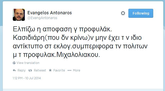 Ελπίζω η απόφαση για προφυλάκιση Κασιδιάρη (που δεν κρίνω) μην έχει τον ίδιο αντίκτυπο στην εκλογική συμπεριφορά των πολιτών με την προφυλάκιση Μιχαλολιάκου.