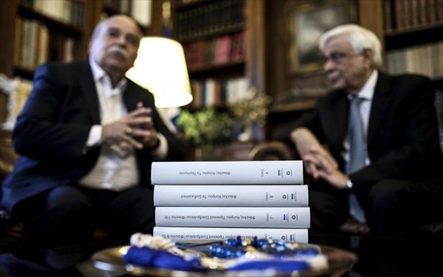 Τους πρώτους τέσσερις τόμους από το υλικό του «Φακέλου της Κύπρου» παρέδωσε ο πρόεδρος της Βουλής Νίκος Βούτσης στον Πρόεδρο της Δημοκρατίας Προκόπη Παυλόπουλο και στον πρωθυπουργό Αλέξη Τσίπρα.