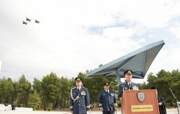 Κατά τη διάρκεια της τελετής, τριάδα εκσυγχρονισμένων αεροσκαφών F-4 πέταξε πάνω από τον χώρο του αεροδρομίου.