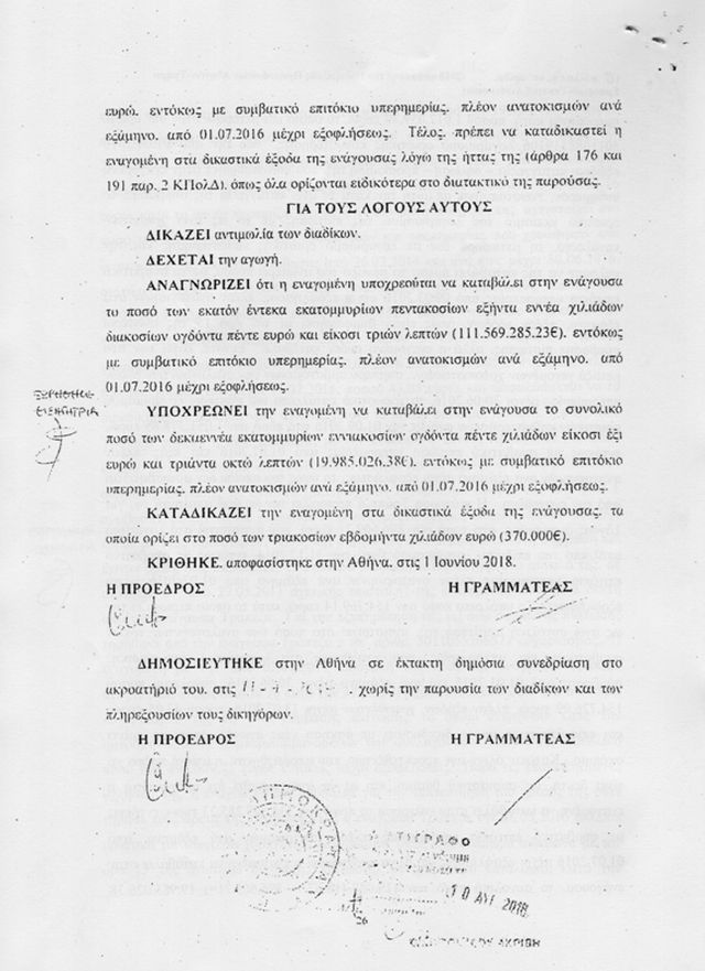 »Το δάνειο αυτό, όσον αφορά το δεύτερο σκέλος της απόφασης, είναι αρρύθμιστο, γιατί αλλιώς η συγκεκριμένη απόφαση δεν θα είχε καταψηφιστική διάταξη.