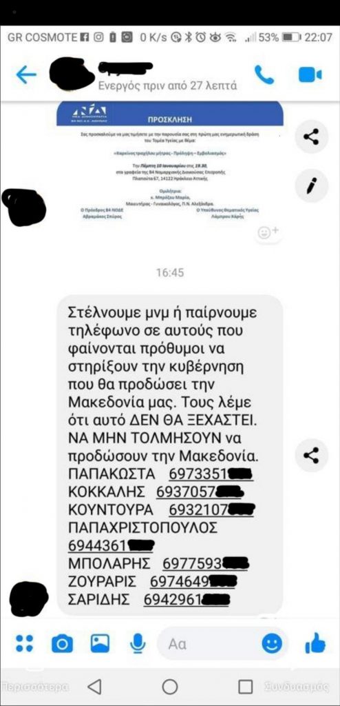 Πάνω από 30 άτομα έχουν στείλει απειλητικά μηνύματα σε βουλευτές για το θέμα της Συμφωνίας των Πρεσπών, σύμφωνα με όσα έχουν διαπιστωθεί μέχρι στιγμής από την προκαταρκτική εξέταση που διενεργεί με εισαγγελική παραγγελία η Ασφάλεια Αττικής.