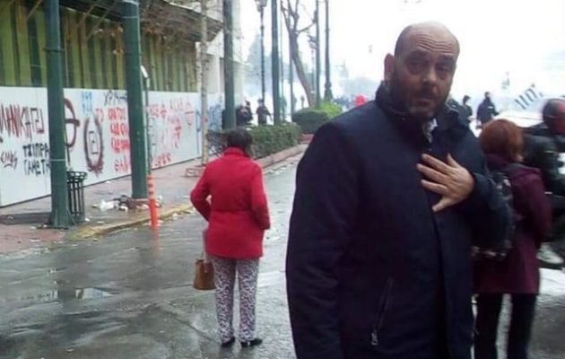 Ενδιαφέρον έχει η φωτογραφία του Ιάσονα Φωτήλα, μεταγραφή στα έδρανα της ΝΔ από το Ποτάμι, ο οποίος πόζαρε να «πνίγεται» από τα δακρυγόνα στην οδό Πανεπιστημίου, πολύ πιο κάτω από τη γωνία του ξενοδοχείου Μεγάλη Βρετανία.