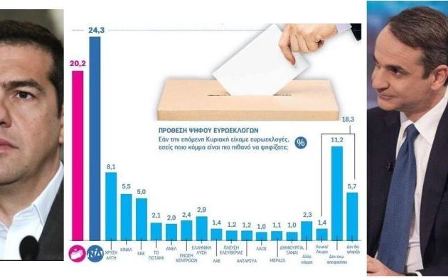 Τη μικρότερη διαφορά της τελευταίας διετίας μεταξύ ΝΔ και ΣΥΡΙΖΑ καταγράφει η πανελλαδική δημοσκόπηση της εφημερίδας «Έθνος της Κυριακής» για τις ευρωεκλογές.
