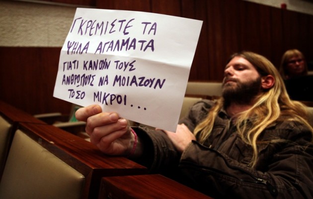 Στην εκδήλωση που έγινε την Πέμπτη στο Πολεμικό Μουσείο, εκτός από τον άνδρα που αποδοκίμασε τον πρόεδρο του ΣΥΡΙΖΑ, φωνάζοντάς του ότι θέλει να κυβερνήσει με τη Δεξιά, υπήρξε και μια σιωπηλή, αλλά συνάμα ηχηρή διαμαρτυρία ενός νεαρού πολίτη, ο οποίος από τις πρώτες πλαϊνές θέσεις είχε καθίσει κρατώντας ένα χαρτί που έγραφε: