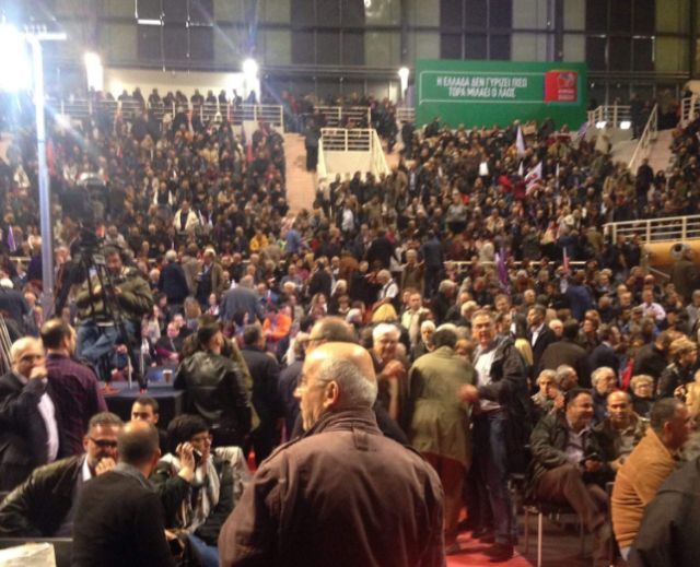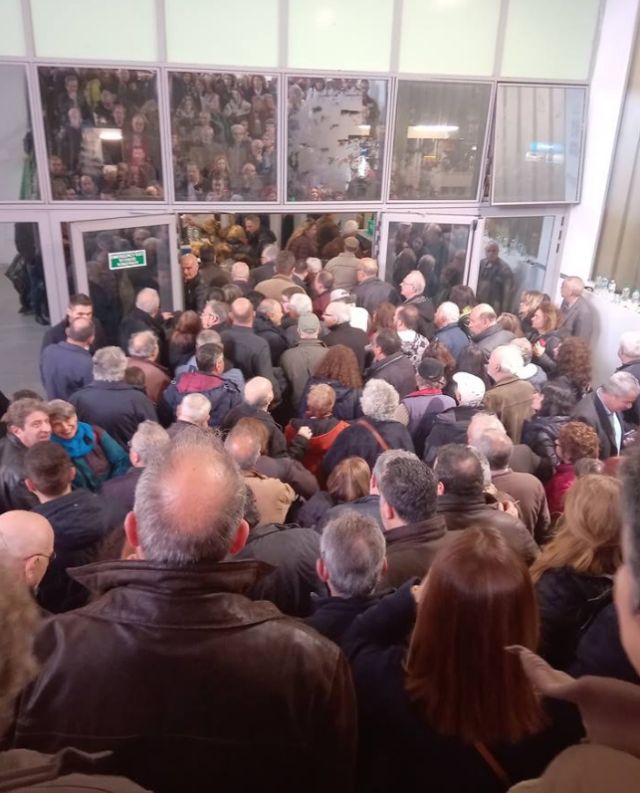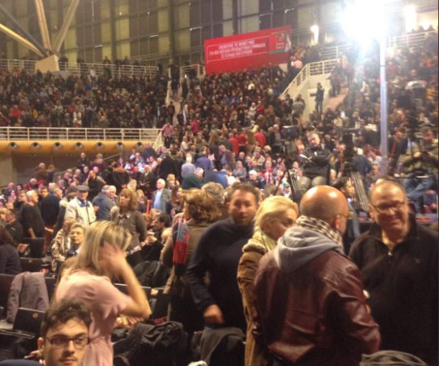 Το αδιαχώρητο επικρατεί στο Γαλάτσι, στο Ολυμπιακό Γυμναστήριο, όπου πραγματοποιείται συνάντηση στελεχών της Προοδευτικής Συμμαχίας.