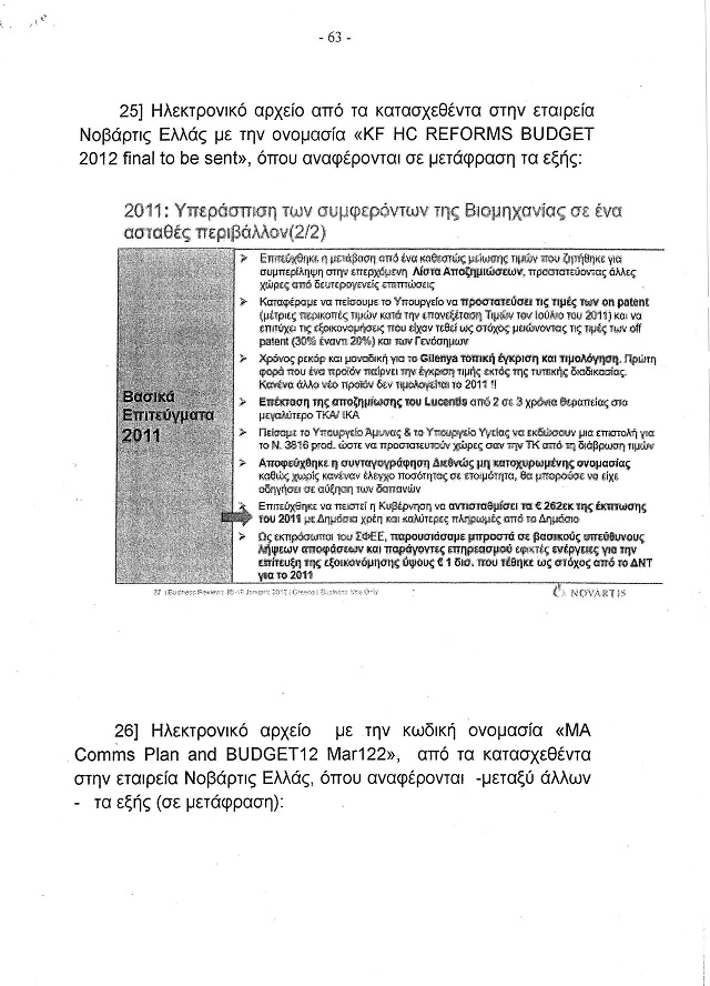 Και λέει παρακάτω το ίδιο έγγραφο: «Καταφέραμε να πείσουμε το υπουργείο να προστατεύσει τις τιμές των on patent (μέτριες περικοπές τιμών κατά την επανεξέταση τιμών τον Ιούλιο του 2011) και να επιτύχει τις εξοικονομήσεις που είχαν τεθεί ως στόχος, μειώνοντας τις τιμές των off patent (30% έναντι 20%) και των γενοσήμων».