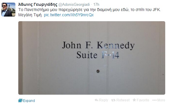 Τι σημασία έχει εάν η Ελευθεροτυπία αμφισβήτησε το γεγονός ότι ήταν καλεσμένος του Πανεπιστημίου, αλλά μίλησε απλά σε μια φοιτητική λέσχη; (διάβασε σχετικά εδώ). Ο Άδωνις περνά στιγμές μεγαλείου και τις “φωνάζει” από το twitter.